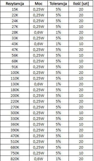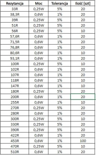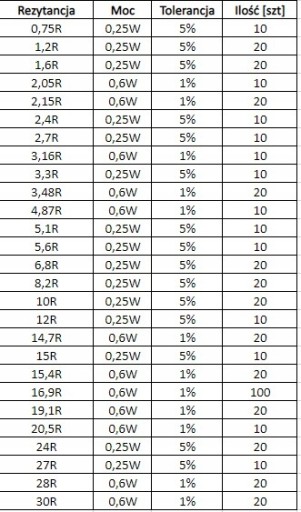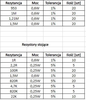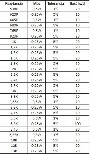 CENA ZA KOMPLET 2185 SZTUK REZYSTORÓW