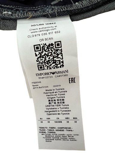 Узкие мужские джинсы EMPORIO ARMANI, размер W 38 L 33