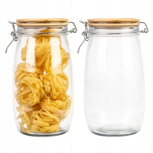 Słoik szklany / pojemnik 1500 ml z DREWNIANĄ przykrywką z BAMBUSA + ZAMKNIĘCIE MECHANICZNE + USZCZELKA