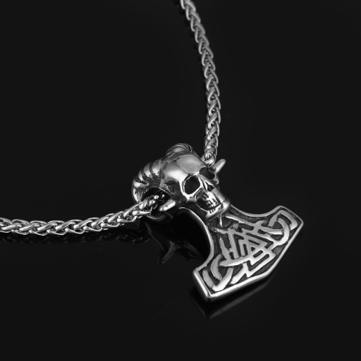 Stalowy wisiorek męski Mjolnir z czaszką