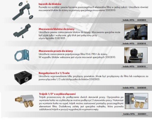 NTS E32-A - Blok składa się z filtra głównego E34 oraz filtra dokładnego E38-D. W komplecie uchwyt do ściany 3382810. Opcjonalnie rozgałęziacz z łącznikami lub trójnik umożliwi podłączenie maks. 2-3 stanowisk lakierniczych.