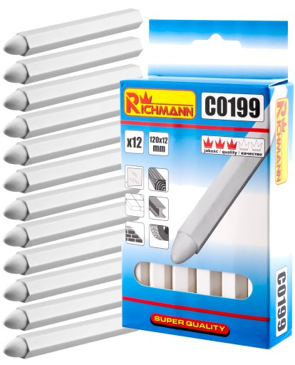 Kreda techniczna o wymiarach 120 x 12 mm w kolorze białym.