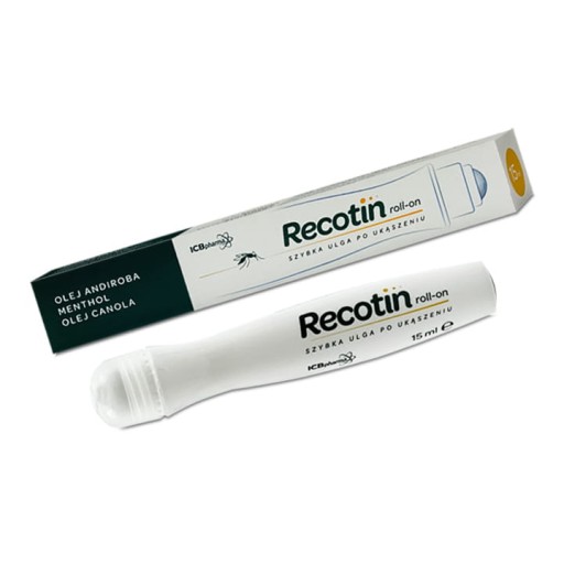 Recotin roll-on środek do stosowania miejscowego, pielęgnacji skóry podrażnionej ukąszeniem owadów (komary, meszki) oraz punktowo w świądzie pochodzenia alergicznego.
