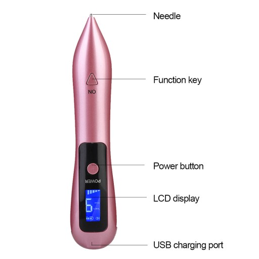 - W zestawie z niebieskim światłem na końcówce pióra, pomaga wyraźnie widzieć pieprzyki.