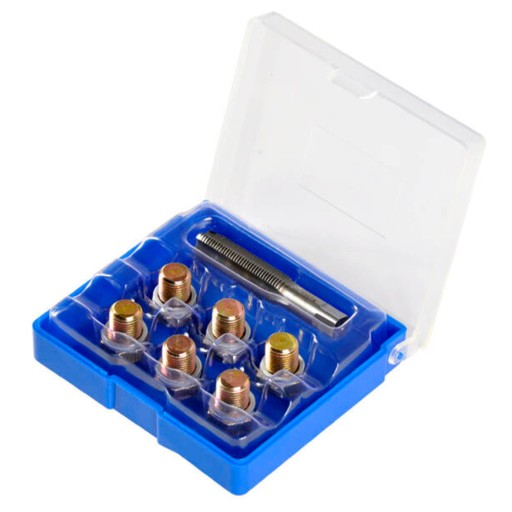 Opis zestawu: Profesjonalny i uniwersalny zestaw do naprawy gwintów gniazd korków olejowych w wielu popularnych pojazdach M15x1.5