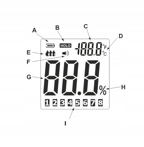 - Rozdzielczość: 0.5% (wilgotność) / 0.1℃/0.1℉ (temperatura),