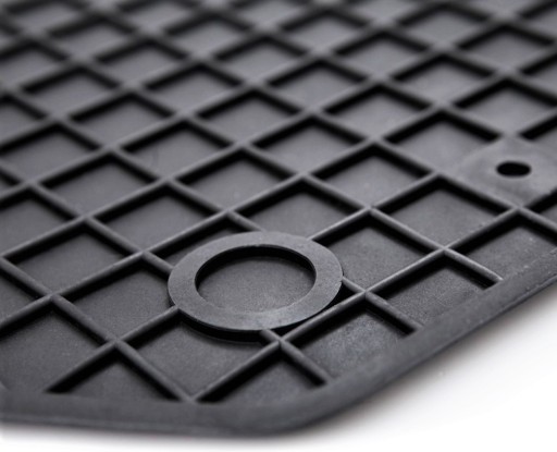 - Wypustki pod spodem dywanika eliminują możliwość przesuwania się dywaników podczas jazdy, co znacząco wpływa na bezpieczeństwo i komfort podróży