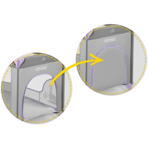 Odpinane wejście boczne jest nie do sforsowania przez małe dzieci, dzięki zamkowi wszytemu od zewnętrznej strony. Natomiast starszym już, sprawniejszym i bardziej ruchliwym umożliwia ono samodzielne, wygodne i bezpieczne wchodzenie oraz wychodzenie z łóżeczka – dzięki temu nie będą próbowały wspinać się na górną krawędź.