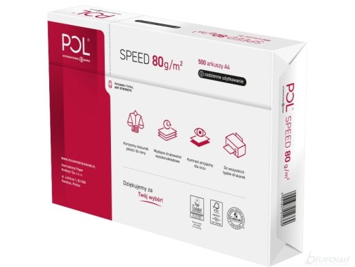 Papier ksero A4 80g POLSPEED to doskonały produkt, który spełni oczekiwania nawet najbardziej wymagających klientów. Ten wysokiej jakości papier jest przeznaczony do codziennego użytku i gwarantuje niezawodne i szybkie drukowanie oraz wierną kopię dokumentów czarno-białych.
