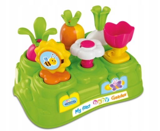 Bardzo kolorowy i wesoły ogród zaprojektowany, aby zapewnić dziecku zabawne i naturalne wsparcie, gdy odkrywa kształty i kolory oraz rozwija swoją zręczność manualną. Najmłodsze dzieci będą się dobrze bawić, umieszczając kwiaty i warzywa w odpowiednich miejscach. Stymuluje koordynację ręka-oko i percepcję wzrokową.