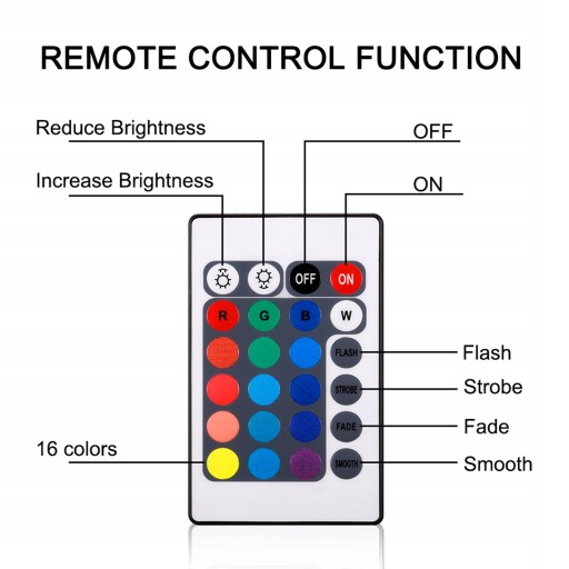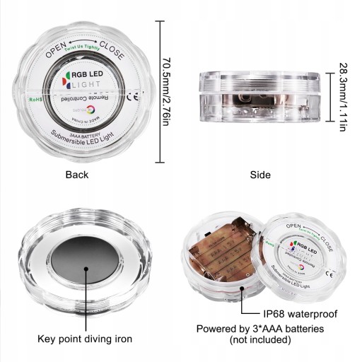 Produkt musi używać pilota do sterowania produktem w celu zmiany koloru światła. Maksymalna odległość sterowania pilotem wynosi 8m; po zainstalowaniu produktu z akumulatorem należy dokręcić górne i dolne łączniki gwintowane. Wykręca czarne wodoodporne pierścienie, aby uzyskać wodoodporny efekt; czas koloru o różnej jasności jest inny, na przykład długie jasne białe światło, około 10 godzin, bateria będzie miała wypływ elektrolitu w przypadku długotrwałego rozładowania. Zaleca się wymianę baterii na lepszą jakość.