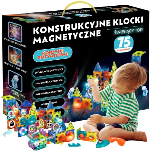 KLOCKI MAGNETYCZNE KONSTRUKCYJNE ŚWIECĄCY TOR 75el
