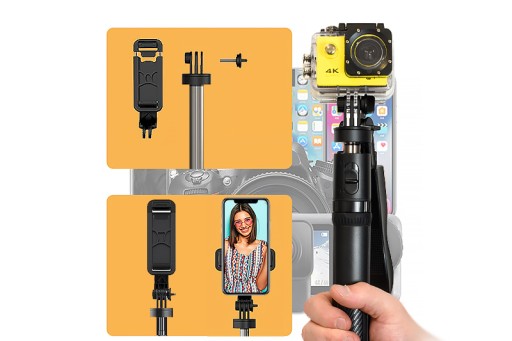 Kij doskonale sprawdzi się w roli monopoda i statywu do kamer sportowych oraz aparatów cyfrowych ponieważ posiada specjalne po odkręceniu głowicy pojawia się uchwyt do kamer - utrzyma urządzenie o wadze do 350 gramów.