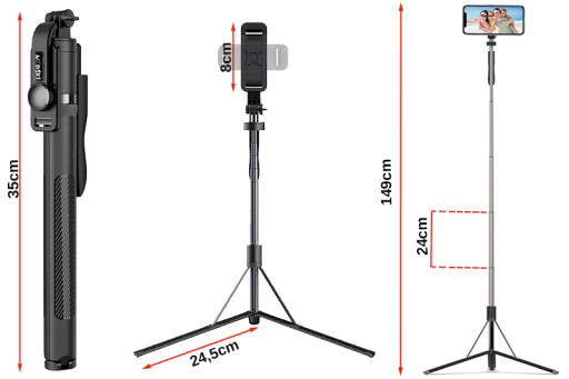 - Długość całkowita: 149cm (rozłożony jako statyw)
