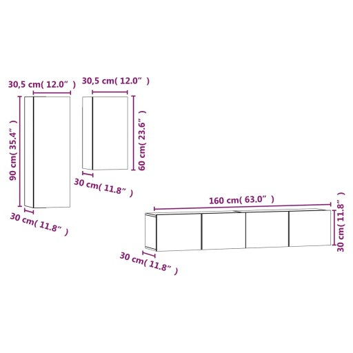 Zestaw 4 szafek telewizyjnych, dąb sonoma