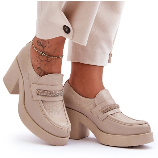 Skórzane Półbuty Na Słupku Z Ozdobą Beżowe Gelanor - rozmiar 38