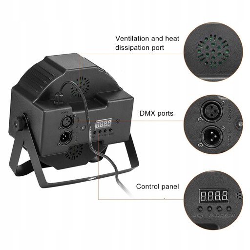• To oświetlenie sceniczne z 36 diodami LED ma 12 diod LED w kolorze czerwonym, 12 diod LED w kolorze zielonym i 12 diod LED w kolorze niebieskim.
