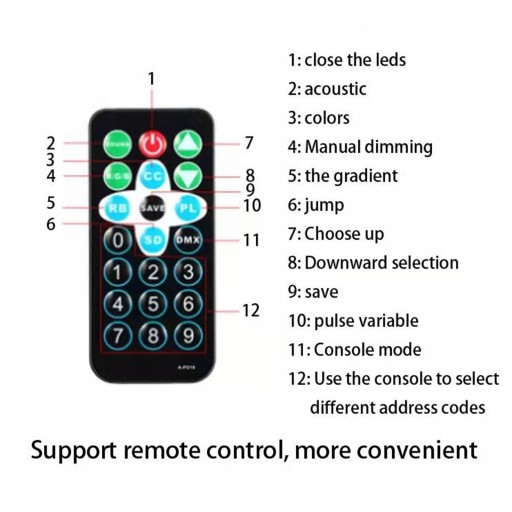 • Zapewnia wiele efektów świetlnych, takich jak przeskakiwanie kolorów, stopniowa zmiana kolorów, pulsowanie kolorów i stroboskop.