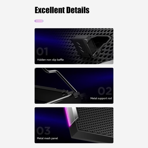 Nadaje się do laptopów o przekątnej 12-18 cali Wyświetlacz LCD HD Sześciobiegowa prędkość wiatru, siedmiu świateł RGB