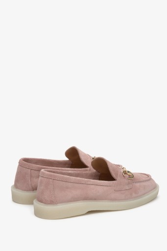 Jasnoróżowe mokasyny damskie z weluru naturalnego ze sprzączką - rozmiar 37