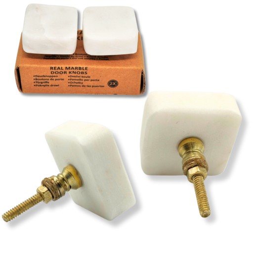 МЕБЕЛЬНЫЕ РУЧКИ МРАМОРНЫЕ КВАДРАТНЫЕ, БЕЛЫЕ, 2 ШТ.