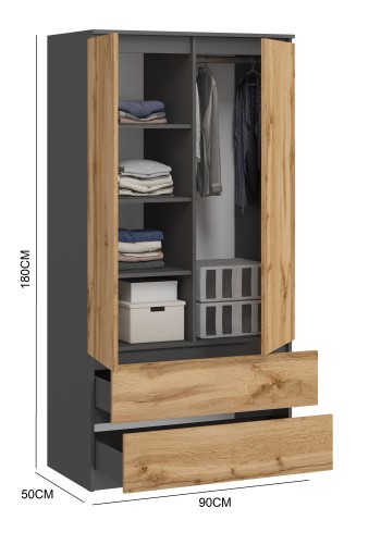 ШКАФ 90 СМ MONIA ДУБ АНТРАЦИТОВЫЙ WOTAN СПАЛЬНЯ