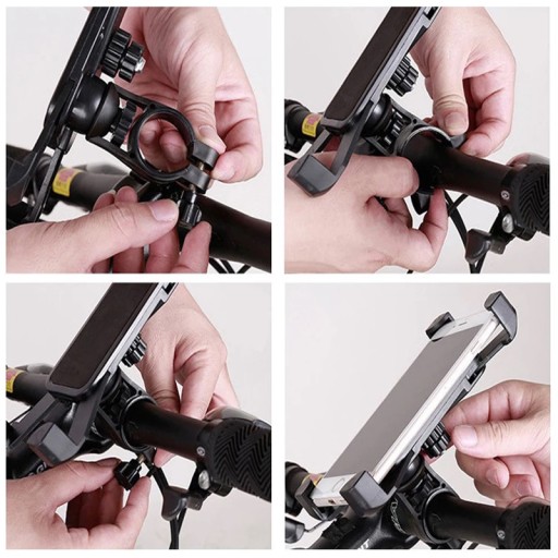 Uchwyt posiada wygodną możliwość regulacji ustawienia Twojego telefonu o 360° stopni zarówno w pozycji pionowej jak i poziomej. Mocny uchwyt rowerowy skutecznie zabezpieczy Twoje urządzenie, pozwalając Ci skupić się wyłącznie na drodze przed Tobą. Ten uchwyt rowerowy można łatwo dopasować do 4-6,5 calowych ekranów i umożliwia łatwy dostęp oraz dobrą widoczność podczas jazdy.