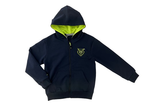 W skład dresu wchodzą: bluza z kapturem zapinana na zamek