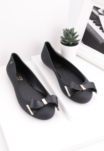 CZARNE BALERINKI DAMSKIE MELISKIE GUMOWE PŁASKIE