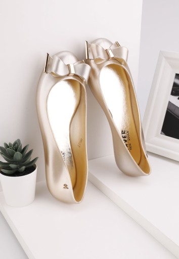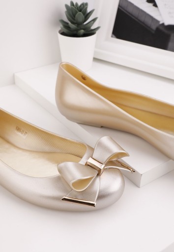 ZŁOTE BALERINKI DAMSKIE MELISKIE GUMOWE PŁASKIE