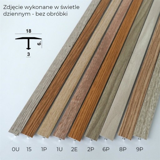 Listwa progowa typ T "teownik" - w skuteczny i bardzo dyskretny sposób łączy panele podłogowe np. w progach drzwi. To tak zwany teownik - do wyboru w najpopularniejszych kolorach podłóg. Wodoodporna bardzo wytrzymała okleina drewnopodobna przyklejona na stałe jest do aluminiowej listwy, tworząc produkt tak wytrzymały, że przez długie lata będzie wyglądał jak nowy.