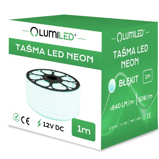 Taśma LED NEON 12V 10W 120LED Błękitna IP67 6x12mm 1m Lumiled