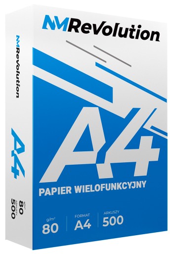 Papier ksero A4 NM REVOLUTION Idealny do zastosowań biurowych, do drukarek laserowych, atramentowych i kserokopiarek. Papier cechuje się wysoką gładkością i białością.