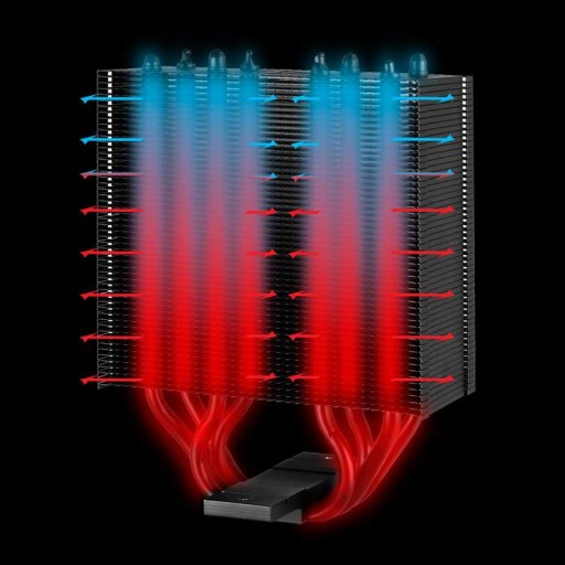 Zamontowane z odpowiednim rozsunięciem rurki cieplne z bezpośrednim dotykiem i zoptymalizowana konstrukcja 54 żeberek chłodzących razem zapewniają idealne odprowadzenie ciepła z procesora w Freezer 34 eSports DUO.