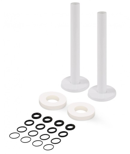 Zestaw maskujący podwójny producenta Terma w kolorze białym. W zestawie do instalacji znajdują się dwa komplety, które maja na celu zamaskować podłączenia zaworów (rozstaw zaworów większy niż 55 mm) poprzez przykrycie rur instalacyjnych. Dzięki zestawowi maskującemu grzejnik wygląda dużo lepiej i bardziej estetycznie, co zmienia szatę zewnętrzną pomieszczenia.