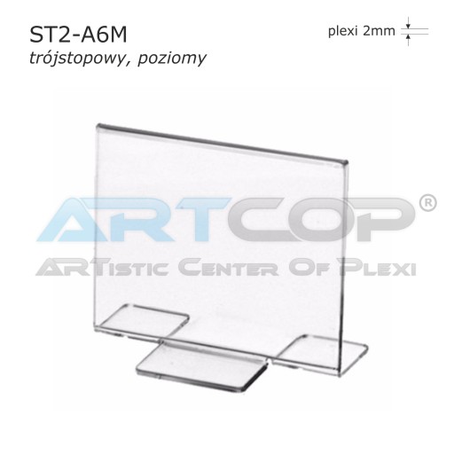 Stojak formatu A6 poziomy dwustronny wykonany z plexi bezbarwnej grubości 2mm.