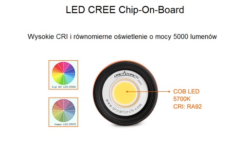 - Dioda Cree LED o maksymalnej mocy 5000 lumenów
