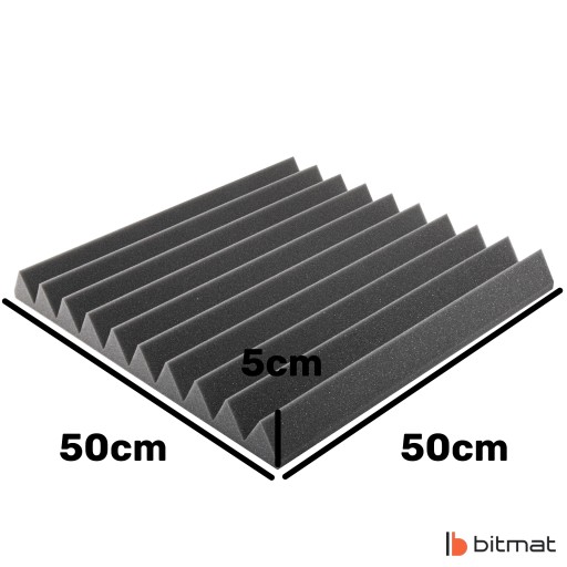 Pianka akustyczna w kształcie klina 50 cm x 50 cm marki Bitmat to bardzo dobry sposób na poprawę akustyki w pomieszczeniach mieszkalnych, biurowych czy salach prób, a także ochrony przed niechcianymi odbiciami dźwięku. Pianka o strukturze otwarto-komórkowej ma za zadanie pochłaniać i rozpraszać fale dźwiękowe, aby zniwelować echo oraz skrócić czas pogłosu. Poza właściwościami akustycznymi oferuje także atrakcyjny wygląd, który będzie pasował do większości pomieszczeń.