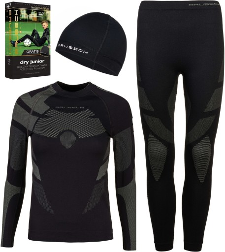 Dziecięca bielizna termoaktywna BRUBECK Dry Junior - Black/Graphite (koszulka + spodnie + czapka)