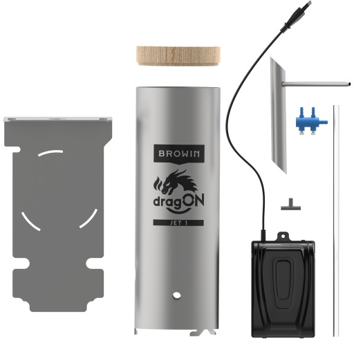 - Wydajna elektryczna pompka z regulacją przepływu powietrza, optymalizująca efektywność spalania zrębków - zapomnij o zawieszaniu się zrębków! Dzięki umieszczeniu pompki na dedykowanej podstawie montażowej, wibracje generowane przez pompkę są bezpośrednio przenoszone na komorę spalania, poprawiając osypywanie się zrębków w procesie ich wyżarzania. Wydajność pompki można regulować pokrętłem, dostosowując ilość dymu do potrzeb i objętości wędzarni.