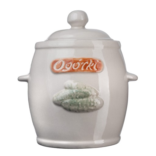 ✅ESTETYCZNA – beczka marki Kadax cechuje się efektownym, nieco rustykalnym wyglądem. Powierzchnia użytej kamionki ma klasyczny, kremowy kolor. Przód beczki zdobi interesujące tłoczenie z napisem "Ogórki".