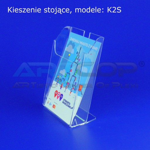 Dodatkowe informacje: Dla cięższych folderów polecamy kieszenie z grubszej plexi, czyli 3mm. Ten model przeznaczony jest na lżejsze materiały reklamowe typu kartki. Zalecane obciążenie - do 150 kartek formatu A5 pion o gramaturze 80. Modele z plexi 3mm znajdą Państwo na innych naszych aukcjach.
