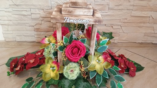 LATARNIA- SZTUCZNY KOMPLET KWIATÓW NA GRÓB