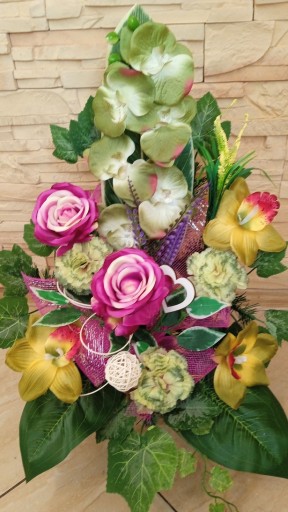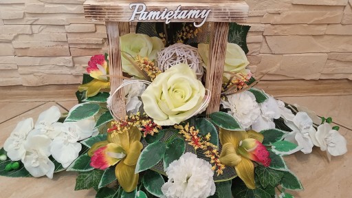 Kompozycja sztuczna (tzw. stroik, ikebana) jest wykonana z sztucznej choiny zabetonowanej w doniczce plastikowej umieszczonej w LATARNI drewnianej co daje jej stabilność. Zabetonowanie daje jej odpowiedni ciężar, co uniemożliwia suwaniu się kompozycji grobu. Kompozycja ma ok. 60 cm długości i 45 cm wysokości