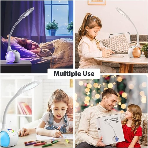 WILIT Lampka biurkowa LED dla dzieci, zmiana kolorów, lampka nocna dla dzieci, chłopców, dziewczynek, dotykowa, ściemniana, 3 poziomy jasności, biała