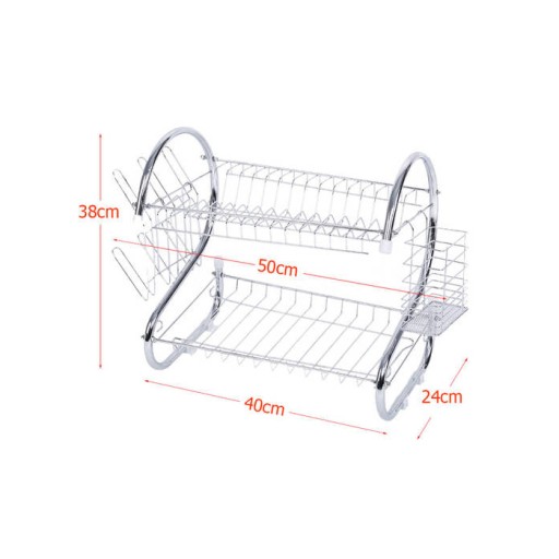 Dwupoziomowa suszarka do naczyń to niezbędny sprzęt w każdej kuchni. Jest bardzo praktyczna, posiada dwa poziomy na których z powodzeniem zmieścimy duże ilości talerzy miseczek czy szklanek. Oprócz tego posiada dwa zawieszane uchwyty. Jeden na sztućce drugi na szklanki lub kieliszki.