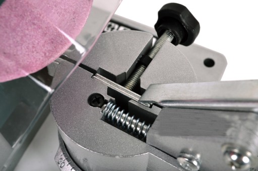 ✅ Ostrzałka wyposażona w przechylane imadło umożliwiające ostrzenie łańcuchów pilarek i pił bez konieczności zmiany miejsc zamocowań.
