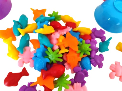 ❇️ Gra polega na wykonywaniu precyzyjnych ruchów i skupieniu się na dopasowywaniu kolorów. Na początku, wysypujemy wszystkie zwierzątka morskie na stół, tworząc kolorowy i pełen życia krajobraz morski. Następnie, układamy 6 kubeczków w różnych kolorach, tworząc miejsce docelowe dla naszych zwierzątek.