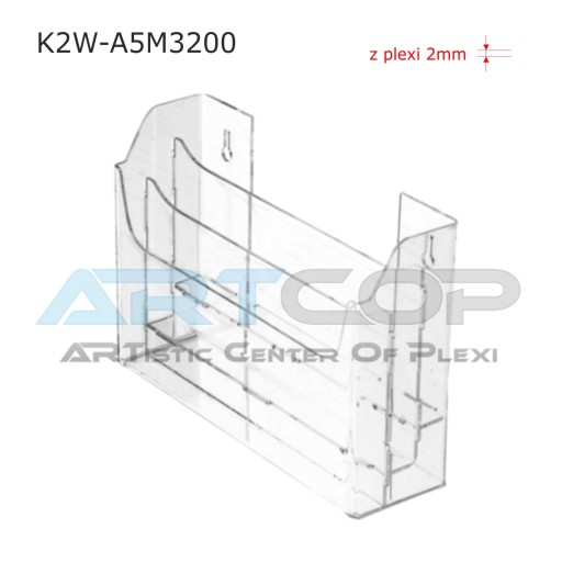 Kieszeń Kaskadowa wisząca na format kartki A5 poziomo wykonana z plexi bezbarwnej grubości 2mm.