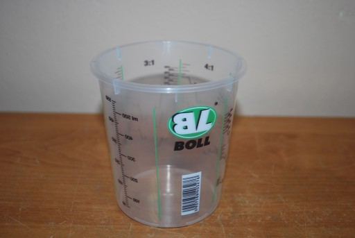 Uniwersalne pojemniki z przeźroczystego tworzywa z nadrukowaną podziałką umożliwiającą przygotowanie mieszanki w żądanej proporcji.